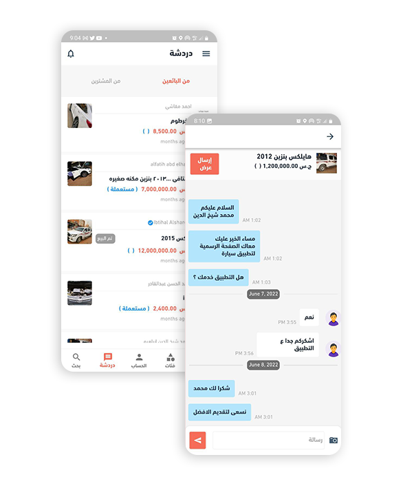 تواصل مع البائع بسهولة بدون الحوجة الى الخروج من تطبيق سيارة , لأننا نملك دردشة سريعة وآمنة داخل التطبيق